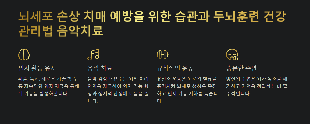 | 유산소 운동 | 뇌 혈류량 증가, BDNF 호르몬 분비 | 주 5회, 30분 이상 |