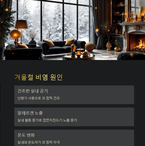 실내 공기 질 관리와 진드기·곰팡이 제거는 증상 완화에 큰 도움을 줍니다.