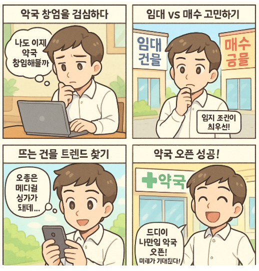 약국 창업 시 건물 매수는 장기적 투자 관점에서 매우 유리할 수 있습니다.